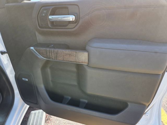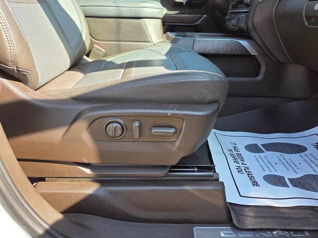 This Sierra Denali's White Frost Tricoat exterior is complemented by the stunning Denali-exclusive grille and 22-inch multi-dimensional polished aluminum wheels, creating a bold and commanding presence on the road. Step inside the luxurious cabin and you'll be surrounded by genuine wood accents, heated and ventilated front seats, and a premium Bose audio system, ensuring a truly premium driving experience.