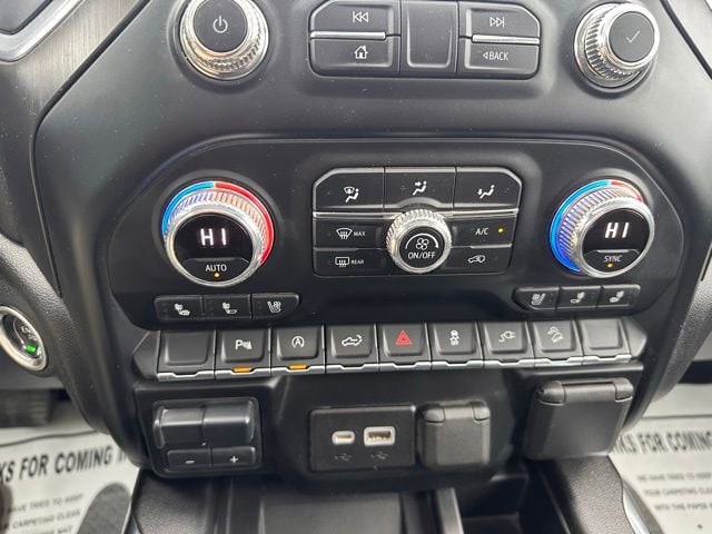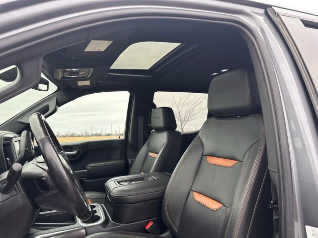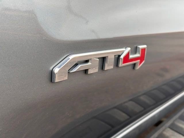 In addition, this Sierra 1500 AT4 is equipped with the AT4 Premium Package, which includes the AT4 Preferred Package, LT275/65R18C MT blackwall Goodyear Wrangler DuraTrac tires, Driver Alert Package I, and the AT4 high clearance step. It also features a power sunroof and 20-inch machined aluminum wheels with carbon grey metallic accents, adding a touch of style and sophistication.